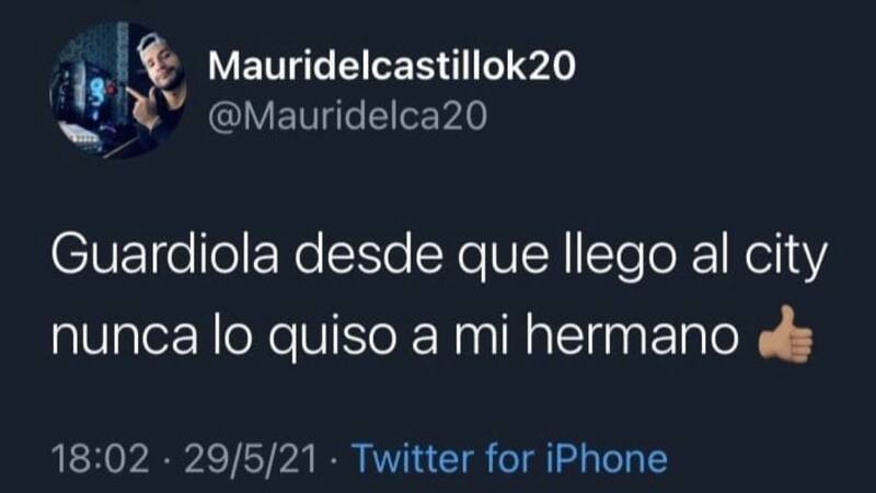 En ese contexto, el hermano de Agüero publicó un tuit donde cargaba contra Guardiola “Desde que Guardiola llegó al City nunca lo quiso a mi hermano”. Sin embargo, poco después eliminó el tuit.