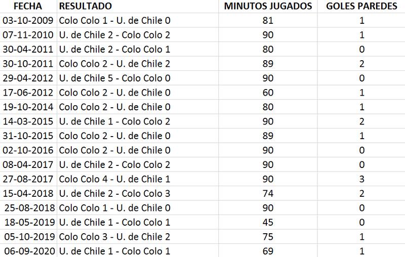Con el tanto iguala a Carlos Campos, ex atacante azul, quien también marcó 16, pero en 20 partidos en Torneos Nacionales. Paredes, por su parte, rompe el récord solo con 17 duelos jugados ante el archirrival en Primera División.