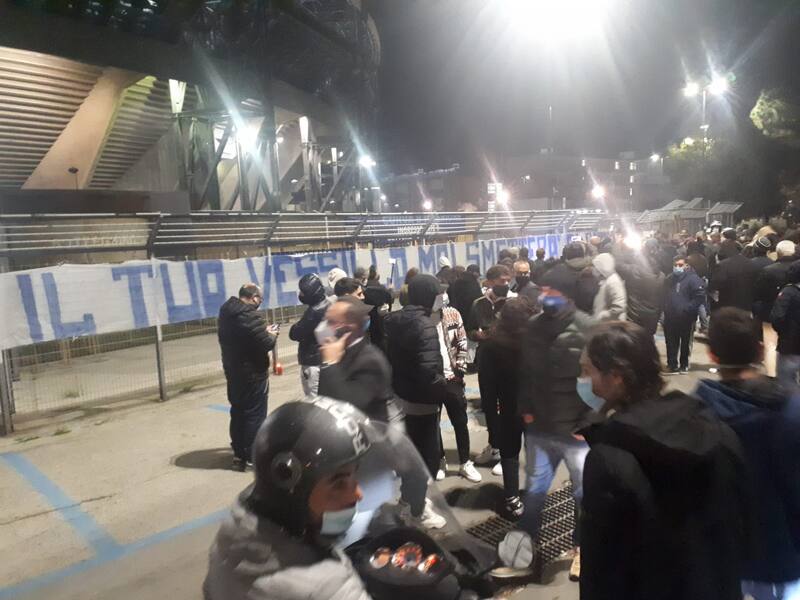 Durante la noche napolitana, los hinchas le han rendido honores a Maradona, con fuegos artificiales, flores y velas al rededor de los grandes murales que llevan su rostro en la calles. El estadio San Paolo, hoy sin fútbol, se mantiene con las luces encendidas en recuerdo de su máximo ídolo.