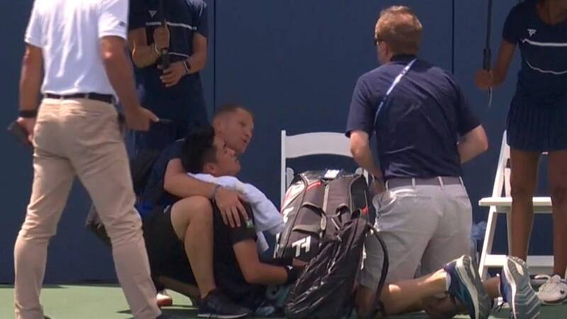 El jugador asiático, quien se enfrentaba al japonés Yosuke Watanuki, había logrado quebrar el servicio del nipón y tras confirmarlo se dirigió a su silla. A pasos de llegar al lugar, tambaleó por unos instantes hasta caer de rodillas, al parecer afectado por la alta temperatura que superaba los 37 grados celsius.