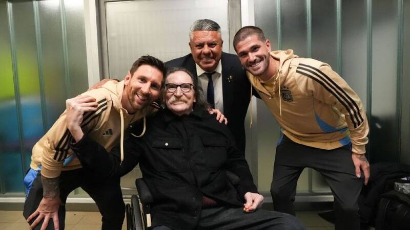 El ídolo del rock argentino, quien atraviesa un delicado estado de salud y se moviliza en silla de ruedas, no quiso perderse la cita. Después del partido se acercó al vestuario local y, más tarde, aguardó el paso de la camioneta en la que la Pulga abandonaba el estadio junto a su familia. Ahí se produjo la postal que rápidamente dio la vuelta por redes sociales.