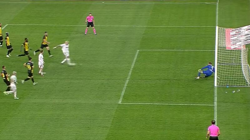 Luego del insólito blooper, la dupla se reivindicaría, ya que una asistencia desde la izquierda de Akturkoglu encontró al atacante por el medio. Este se perfiló de gran manera y definió con un remate ajustado para anotar el único tanto del encuentro, a los 42 minutos.