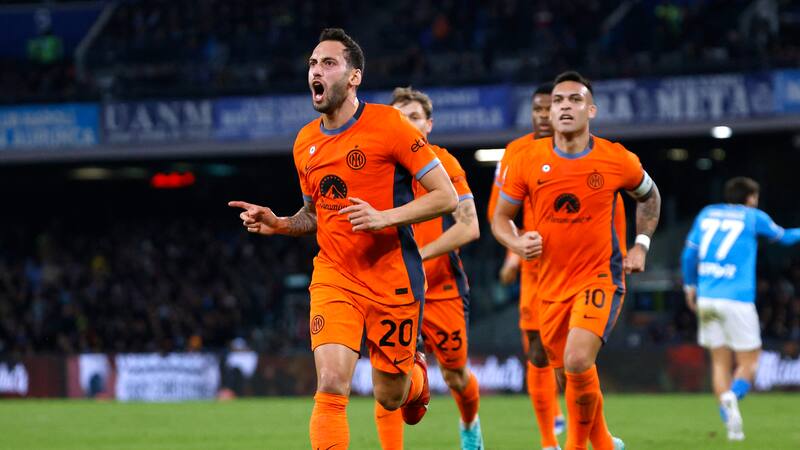 Así como se estaba desarrollando el partido, el gran golpe llegó en los 44′. Un rápido contragolpe desacomodó a la defensa del Napoli. Tras un centro, elevado, Barella cedió atrás y desde la media luna del área apareció Hakan Calhanoglu para sacar un tiro fuerte y bajo que se coló pegado al poste derecho del arquero Alex Meret decretando el 0-1 parcial.