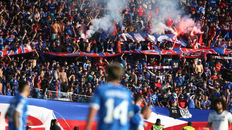 La bandera gigante que se desplegó en el Estadio Nacional, al inicio de una nueva versión del Superclásico del fútbol chileno, no fue suficiente para la barra brava de Universidad de Chile. Los hinchas estudiantiles armaron su propia “fiesta” con elementos prohibidos en los recintos deportivos del país.