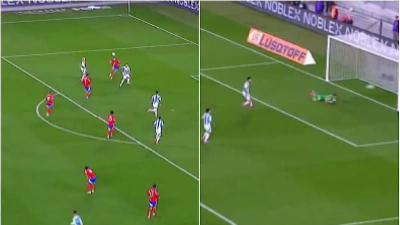 A los 45+2, Mauricio Isla controló un balón y lanzó desde la mitad de la cancha un pelotazo al área. Ahí, Matías Catalán se impuso de cabeza a los defensores argentinos. Su tiro se fue alejando hacia la izquierda del Dibu Martínez, pegó en el palo y volvió al campo, donde fue controlada por el meta del Aston Villa.