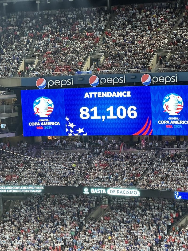 En el Metlife Stadium se acerca el final del partido cuando se puede ver una cifra atractiva. Para Chile, claramente no es el marcador del encuentro, que le da la victoria a la escuadra transandina, aunque la superficie a la que hay que mirar es la misma: el tablero electrónico donde se lleva la cuenta de los goles y otros aspectos que permite la tecnología de punta con la que cuenta la pantalla.