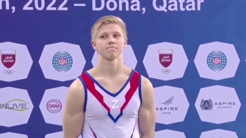 El gimnasta terminó tercero en la prueba de barras paralelas del mundial de Doha y apareció con una "Z" en su vestimenta, la misma letra con la que se han visto en vehículos militares.