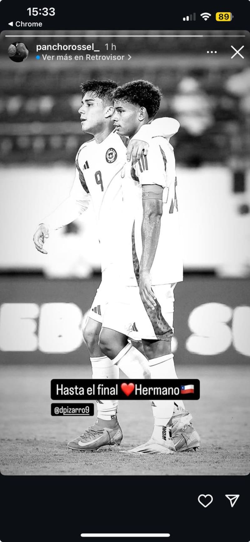 Sin embargo, aunque Pizarro se llena de cuestionamientos en la actualidad por su pobre rendimiento con el Equipo de Todos y en el fútbol de la Serie A de Italia, hay un jugador que lo respalda. Se trata de Juan Francisco Rossel, su compañero en el ataque de la Roja. En un intento por elevar el ánimo del ex albo en medio de su crisis goleadora, el máximo artillero chileno del Sudamericano jugado en territorio llanero le dedicó un sentido mensaje de apoyo en su cuenta de Instagram. “Hasta el final hermano”, publicó el atacante de la UC.