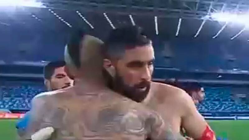 En el mediocampo se produjo un abrazo que llamó la atención de todos. Mientras Luis Suárez, el 9 charrúa, intercambiaba palabras con Claudio Bravo, con quien fue compañero del Barcelona, apareció Vidal. El Rey le dio la mano al guardameta y no tuvo problemas en abrazarlo, olvidando todas las diferencias que ambos tuvieron durante el pasado.