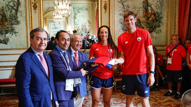 Este encuentro estuvo marcado por la entrega de la bandera chilena que llevarán Jarry y Abraham en la ceremonia inaugural, la que está programada para este viernes 26 de julio a partir de las 13.00 horas de Chile.