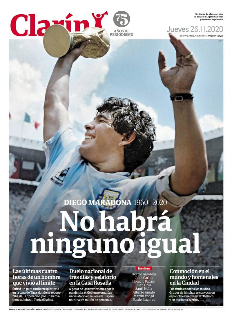 Los diarios deportivos de todo el orbe le dedicaron grandes primeras páginas al Diez, que falleció a los 60 años.
