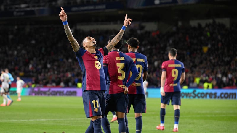 A los 25 minutos, Raphinha toca el balón en la línea del arco para abrir la cuenta ante Borussia Dortmund.