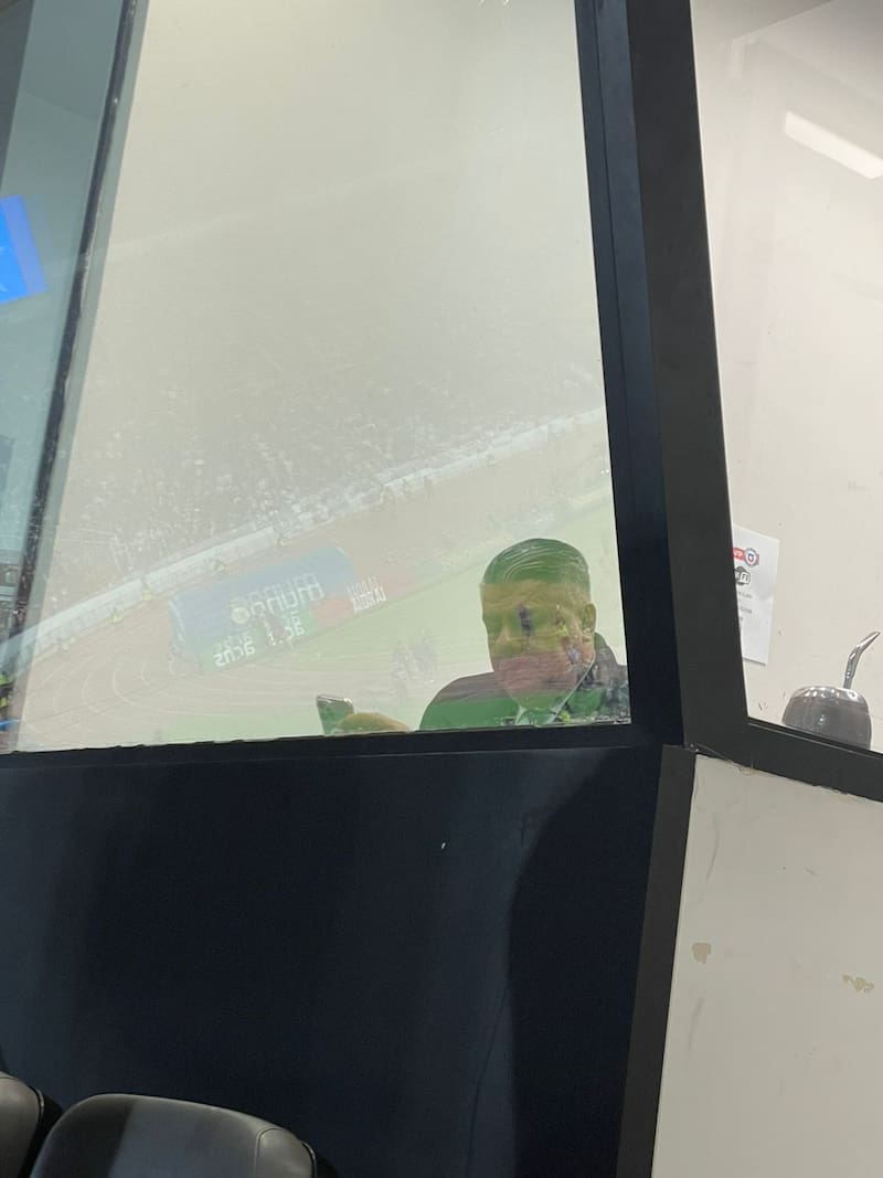 El presidente de la AFA presencia el calentamiento de ambos elencos desde el interior de una caseta del Estadio Nacional.