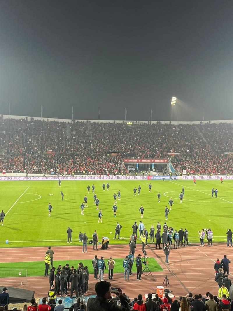 A menos de una hora del inicio del partido, no hay mucho ambiente en el Estadio Nacional. El sector habilitado para hinchas argentinos está bastante nutrido.