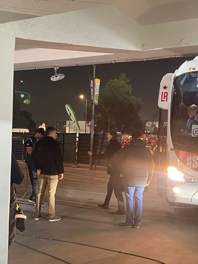 Ricardo Gareca fue uno de los primeros en descender del bus. La Roja ya está en coliseo ñuñoíno.