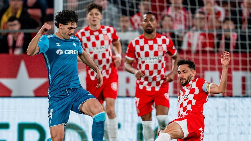 (94′) Era el segundo descuento: primero una centro atrás que no conecta ningún jugador de Girona y luego Miguel le pega cruzado y se va por poco.