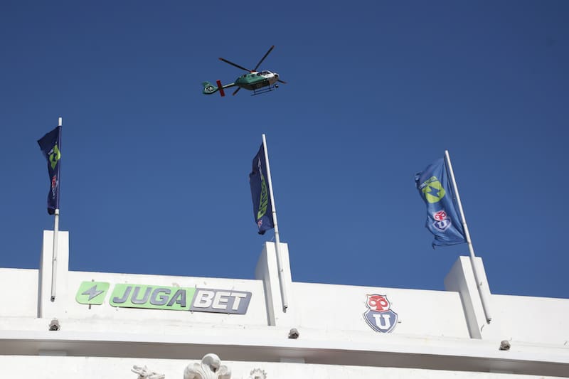 Un helicóptero de carabineros sobrevuela el Estadio Nacional y acompañó la llegada de los equipos.