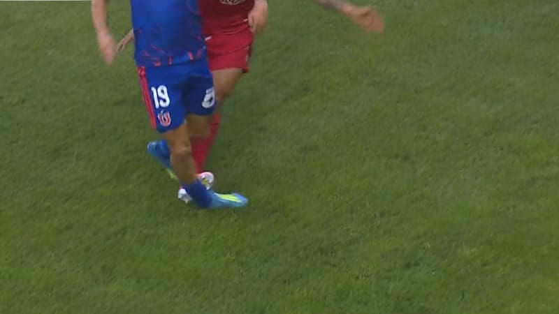 El árbitro dejó pasar un duro pisotón de Giovany Campusano, que ni siquiera recibió tarjeta amarilla.