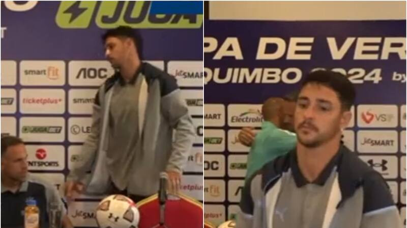 Pasados los 18 minutos, ningún periodista le había efectuado preguntas a la delegación de los cruzados, algo que enfureció Zampedri, a tal punto que se le veía visiblemente incómodo.