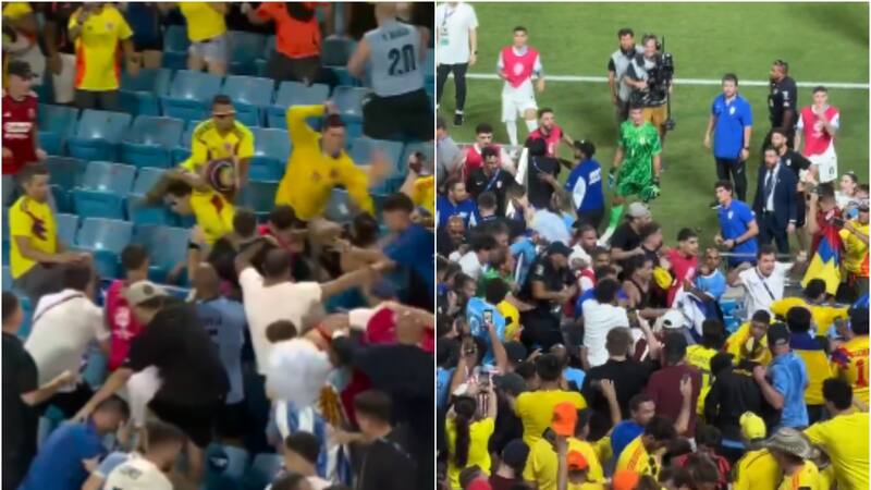 Sin embargo, lo peor vino después. Al momento en que los futbolistas debían retirarse del campo de juego, Ronald Araujo y Darwin Núñez saltaron a una de las tribunas del recinto, la que estaba mayoritariamente ocupada por hinchas colombianos, lo que dio inicio a una brutal pelea.