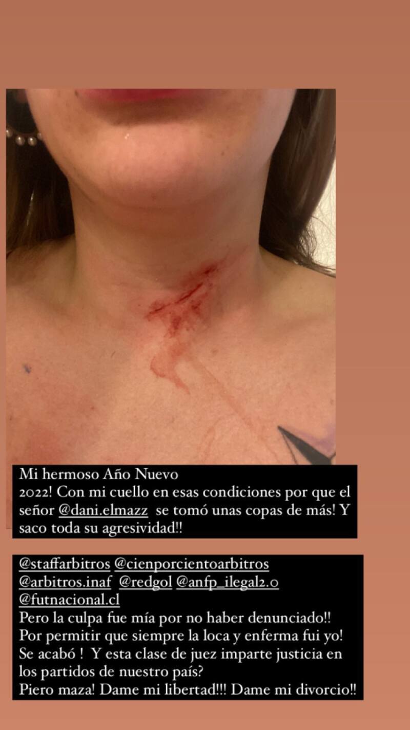 A continuación mostró una fotografía con una herida en el cuello, contando que el árbitro “se tomó unas cosas de más y sacó toda su agresividad” para el año nuevo de 2022.