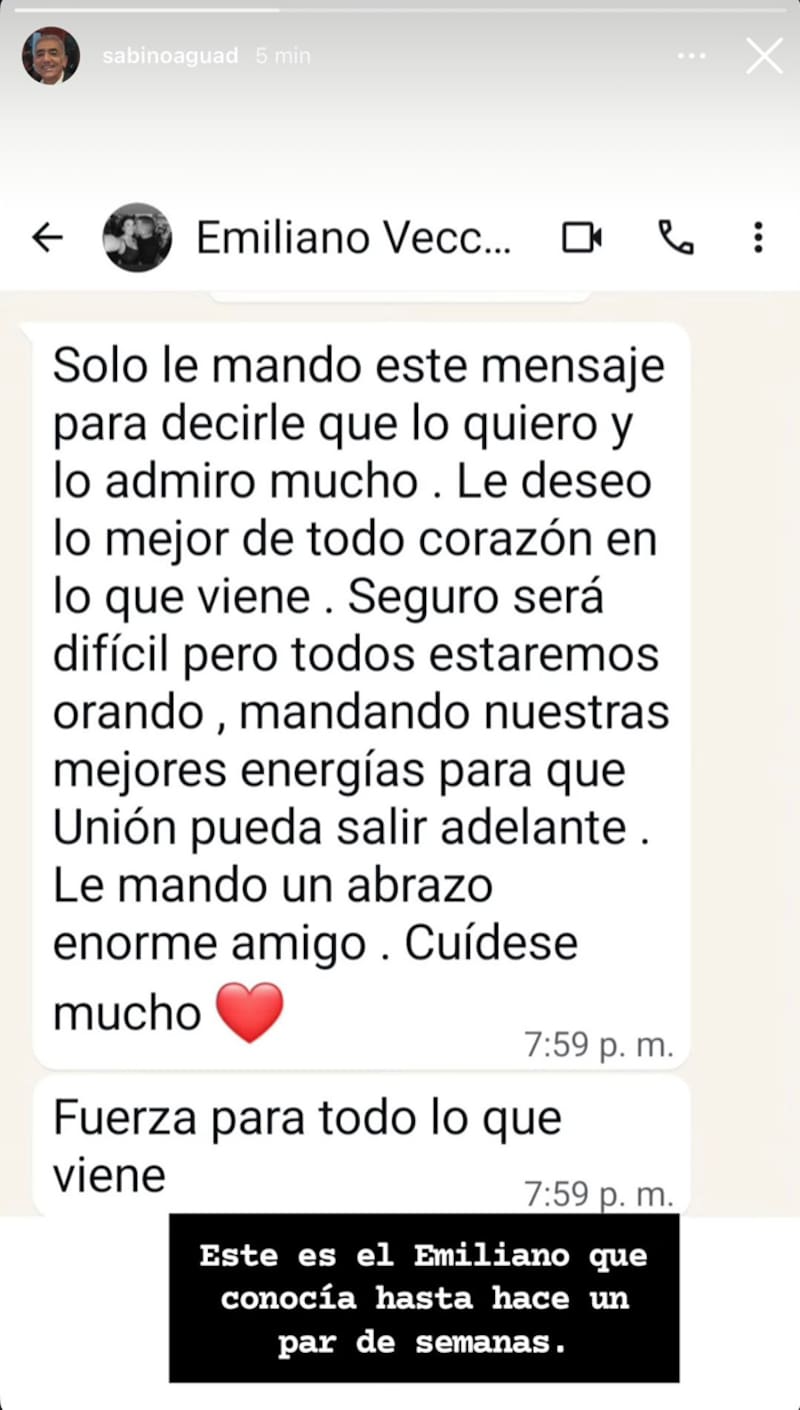 En medio de la batalla entre ambos, que se fue tornando en un asunto legal, Sabino Aguad salió al paso. Lejos de apaciguar los ánimos, el gerente general del equipo de Independencia exhibió a través de su cuenta de X una serie de mensajes que le habría enviado el futbolista antes del conflicto. “Este es el Emiliano que conocía hasta hace un par de semanas”, escribió el ingeniero comercial.