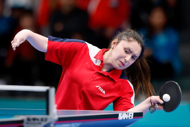Florencia Pérez demuestra seriedad. Instantes después, recibe su medalla de oro. Ahora sonríe. Es campeona. Con 14 años, la para deportista nacional es una de las grandes ganadoras del sábado 18 de noviembre en el Centro de Entrenamiento Olímpico. Ese día, el Team Para Chile se colgó cinco preseas doradas. Cuatro de ellas en el tenis de mesa, la disciplina de la paratleta chillaneja. Jornada más tardes repetiría su triunfo, ahora en dobles mixtos. Sumó dos oros en Santiago 2023.