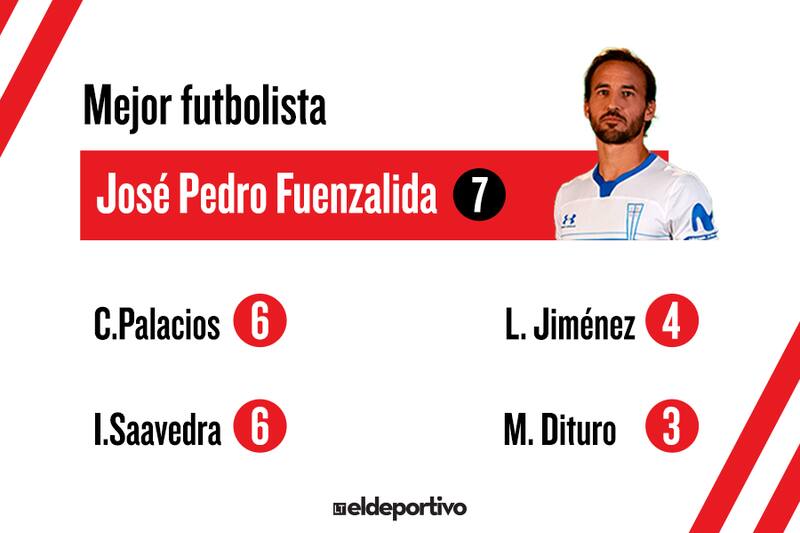 A dos días de cumplir 36 años, José Pedro Fuenzalida nuevamente fue elegido por sus pares y entrenadores como el mejor jugador del fútbol chileno. El Chapa no parece envejecer en la cancha, en tiempos donde muchos a su edad ya viven los descuentos en su carrera. El jugador cruzado, en cambio, brilla a nivel local y todavía es una opción válida en la selección chilena. El lateral-volante derecho se impuso esta temporada a Carlos Palacios (20 años) e Ignacio Saavedra (22) por apenas un voto de diferencia. El joven delantero hispano, eso sí, arrasó como revelación de la temporada, con 23 preferencias contra tres de Saavedra, su escolta.