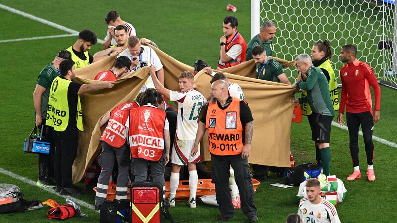 Barnabás Varga tuvo que ser asistido mientras sus compañeros ocultaban la visión. El juego se vio interrumpido y el delantero fue sacado en ambulancia.