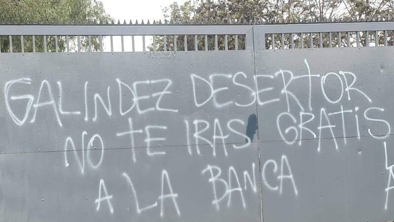 La situación de Hernán Galíndez escala en intensidad. Un grupo de fanáticos de Universidad de Chile reaccionó frente a la intención del golero de dejar el club y rayó con fuertes mensajes el frontis del Centro Deportivo Azul, el lugar de entrenamientos de la plantilla que dirige Diego López, aludiendo al deseo del guardameta, quien denunció amedrentamientos a él y su núcleo familiar derivados de la disputa que mantienen Chile y Ecuador en el marco del caso Byron Castillo.