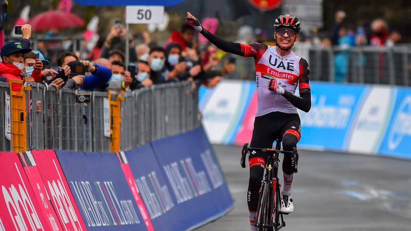 El norteamericano atacó en la recta final del recorrido de 187 kilómetro entre Piacenza y Sestola para dejar atrás al italiano, quien, pese a finalizar segundo, trepó al liderato de la tabla general.