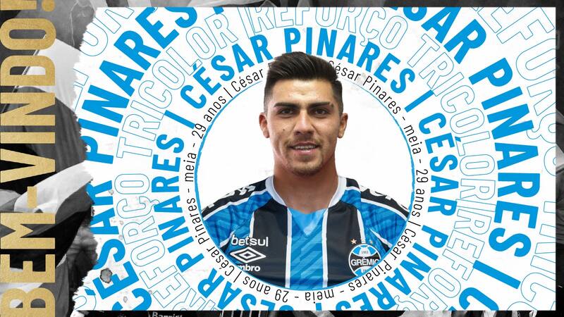 “Gremio confirma oficialmente la contratación del mediocampista chileno César Pinares. El atleta, que actuaba en Universidad Católica, llegó la mañana de este domingo a Porto Alegre, donde se realizó los exámenes médicos y firmó un contrato por dos temporadas, con la posibilidad de extender el vínculo por un año más, conforme a la consecución de metas”, dice el comunicado.