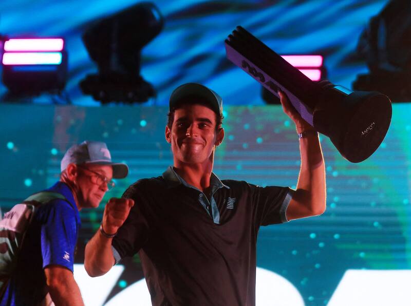 Joaquín Niemann festeja con trofeo en mano sobre el green del hoyo 18 en Mayakoba. La exclusiva cancha de la Riviera Maya quedará marcada como el escenario donde consiguió su primera victoria en el LIV, el circuito árabe que lo cautivó en 2022 con un formato más refrescante que el tradicional y un contrato multimillonario, que ya lo tiene con una amplía ventaja como el deportista chileno que más dinero ha recaudado en su carrera. Este sábado, en la fecha disputada en Las Vegas, terminó en el puesto 30.