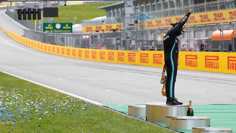 Durante la premiación, el británico, seis veces campeón del circuito, realizó un gesto de antirracismo, tal como hizo en la fecha pasada en Austria, donde él mismo le pidió a sus colegas sumarse a una iniciativa, aunque no todos lo hicieron. Celebró a lo Black Power, con el puño al cielo.