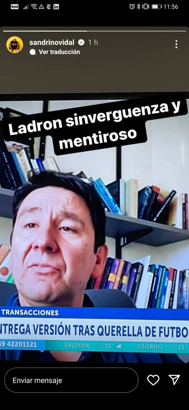 Uno de los telespectadores fue Sandrino Vidal, hermano del volante, quien explotó contra su tío. “Ladrón, sinvergüenza y mentiroso”, escribió en una historia de Instagram, junto con la imagen en televisión de Albornoz.