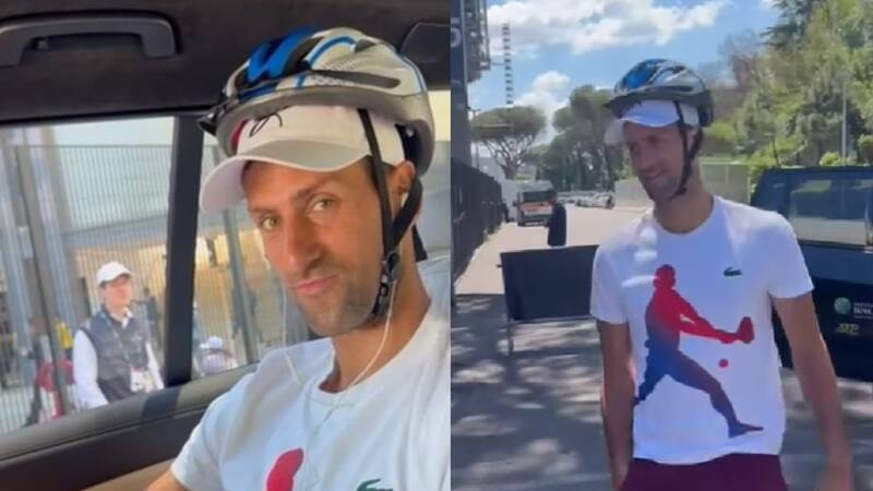 El tenista balcánico llegó al Foro Itálico con una sonrisa. Las miradas y los focos siempre están puestos sobre él, pero esta vez se salió de los protocolos y sorprendió con un llamativa prenda. El Djoker llegó a entrenar protegiendo su cabeza, en una divertida imagen que se viralizó rápidamente. “Esta vez vengo preparado”, publicó en sus redes sociales, luego de superar su accidentada jornada.