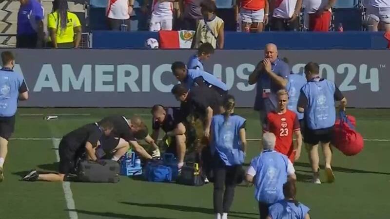 Una imagen impactante se dio en el enfrentamiento entre las selecciones de Perú y Canadá. Cuando el final del primer tiempo se acercaba, uno de los jueces de línea se desplomó en el terreno de juego. Se trata del árbitro Humberto Panjoj, quien no pudo soportar el calor en que se desarrolla el duelo en Kansas City. El arquero de la selección norteamericana, Maxime Crepeau, fue el primero en percatarse. El guardameta corrió desde su área para ayudar al colegiado, mientras clamaba por asistencia profesional.