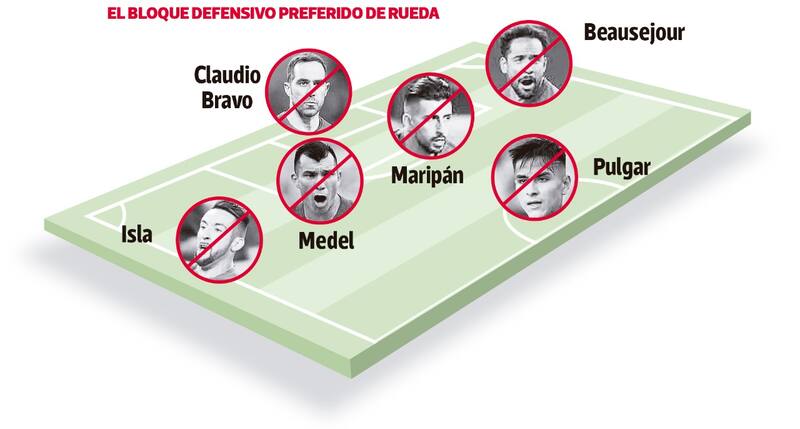 El técnico colombiano está obligado a rearmar el bloque defensivo de la Roja, visiblemente alterado por los descartados. En un panorama ideal, con todos a bordo, la zaga contaría con Claudio Bravo, Mauricio Isla, Gary Medel, Guillermo Maripán, un lateral izquierdo a definir (aún no aflora el reemplazo de Beausejour), más Erick Pulgar como volante central. Hoy no está ninguno. La última baja fue la del Huaso, por el coronavirus.