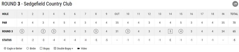 El talagantino despegó en los hoyos restantes y consiguió un buen cierre en Carolina del Norte. Se anotó con otros cuatro birdies, en las banderas 1, 3, 4 y 8, y no sumó bogeys. Su gran desempeño en el lapso final lo dejó con un registro total de 65 golpes, con -5.