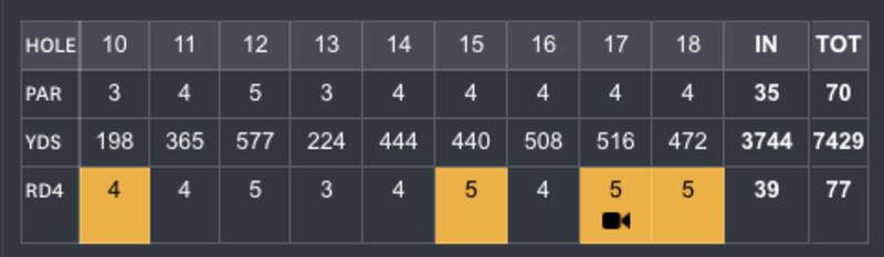En la vuelta al Club House la suerte no fue mejor, aunque hubo más regularidad. cuatro bogeys en esos nueve hoyos terminaron por hacer que Niemann tuviera la ronda más baja en este US Open y la peor de cualquiera de sus presentaciones en majors, pues nunca había marcado +7. Sí igualó los 77 golpes que marcó en la segunda ronda del Masters 2018, tres días antes de hacerse profesional, pero en Augusta era de cinco sobre el par.