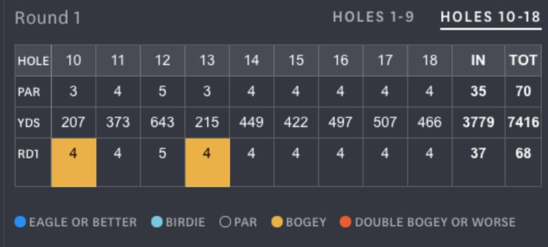 En la segunda mitad del campo el brillo fue menor. Al menos en los números, pues anotó bogeys en los hoyos 10 y 13, los últimos dos pares tres de Winged Foot. En el primero se fue a la arena y en el otro, cayó en el consabido duro rough del campo. De ahí en adelante selló pares para irse tranquilo al Club House.