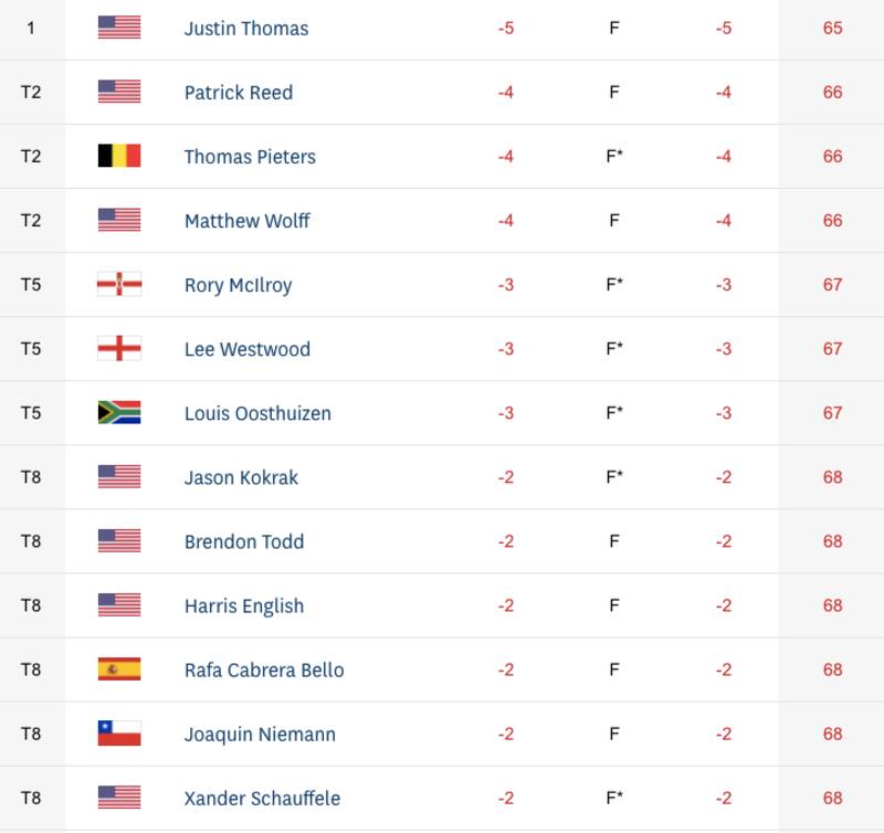 Al final remató 8º, empatado con otros cinco golfistas, a tres golpes del líder, Justin Thomas, quien con 65 batió el récord de este campo en abiertos estadounidenses. Lo escoltan Patrick Reed, Matthew Wolff y Thomas Pieters: