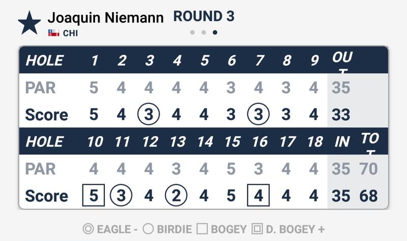 La jornada nuevamente estuvo marcada por lo complicada que los organizadores pusieron la cancha Norte de Olympia Fields. Acertar un fairway y después un green en los segundos tiros parecía un doblete impensado para cualquier jugador. Par o incluso +1 sigue apareciendo como un score muy bueno en este campeonato. Niemann marcó seis de los 14 fairways en la ronda; e impresionantes 15 de los 18 greens.