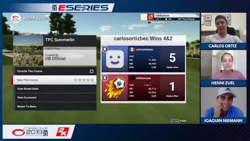 No era un desafío de amigos. El PGA Tour fue quien enfrentó al mexicano Carlos Ortiz con Joaquín Niemann en un duelo virtual, cada uno desde sus casas, jugando el videogame The Golf Club 2019, que patrocina el propio circuito. Todo, a la espera de la reanudación de la gira.