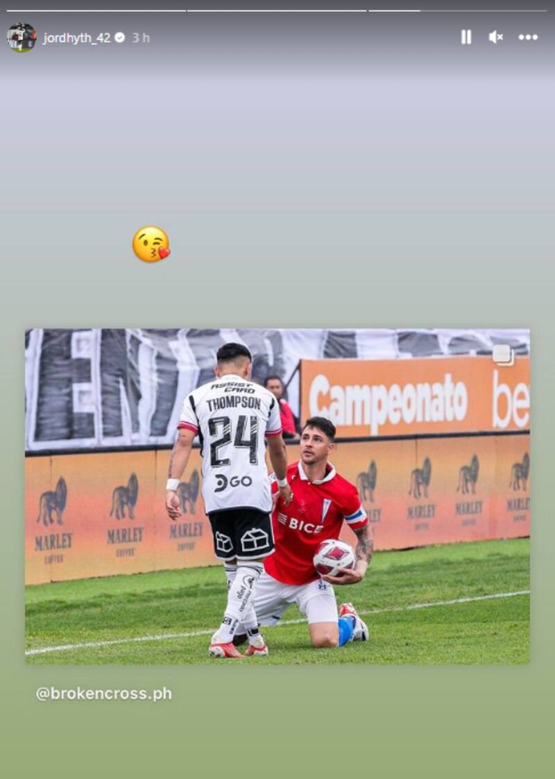 El volante albo recurre a la red social para celebrar la victoria de Colo Colo sobre la UC con una controvertida imagen que incluye al delantero cruzado.
