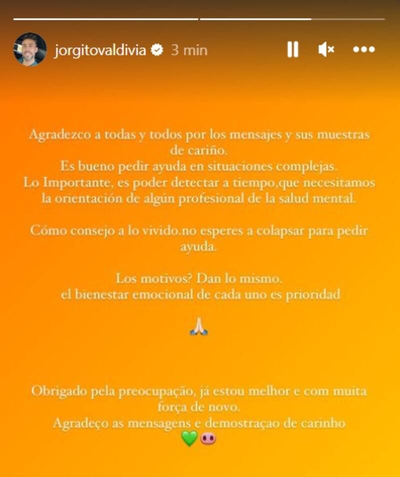 Jorge Valdivia ya está en casa. En esta jornada, fue dado de alta por la crisis nerviosa que sufrió el fin de semana, que obligó a internarle en la unidad siquiátrica del hospital clínico de la Universidad Católica. Había colapsado por los múltiples problemas que experimentó en el último tiempo a nivel personal.