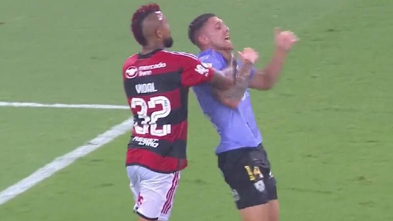 El oriundo de San Joaquín le agarró la camiseta al defensor mientras se encontraba en el suelo. Este respondió con un manotazo y un puñetazo desde el césped. Luego de que se pusiera de pie, Vidal lo tomó por el cuello. El juez uruguayo Andrés Matonte amonestó a ambos jugadores.