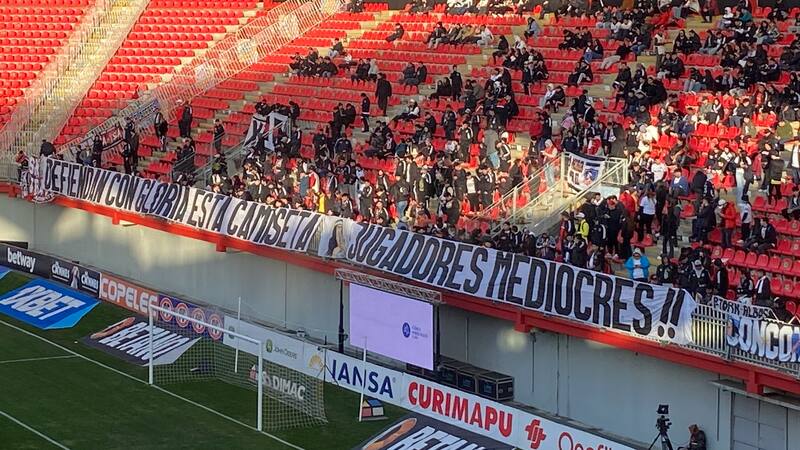“Defiendan con gloria esta camiseta jugadores mediocres” lanzaba un lienzo que recorría la grada del público visitante en el Nelson Oyarzún. Mensaje directo y que evidencia la tensión que gira en torno al proceso colocolino, el cual aún no se repone de la derrota por 5-1 ante América Mineiro, colista del Brasileirao.