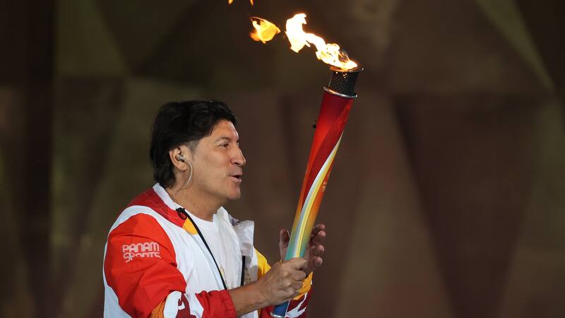 Iván Zamorano fue uno de los grandes protagonistas de la jornada inaugural de Santiago 2023. El histórico futbolista nacional llevó en sus manos la antorcha con la llama Panamericana, para luego dársela a Nicolás Massú y Fernando González, quienes finalmente encendieron el pebetero junto a Lucy López.