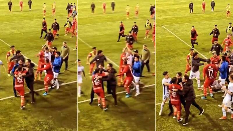 Sin embargo, al poco tiempo se generó un tumulto en uno de los sectores cercanos a la galería donde estaba ubicada la hinchada visitante entre jugadores de ambos equipos. Aquí el conflicto fue escalando, pues el defensor de la usina Bastián Roco levantó los brazos y a su espalda apareció Lorenzo Reyes quien le propinó un manotazo desde atrás, generando la inmediata reacción de los fanáticos y empeorando aún más la situación.